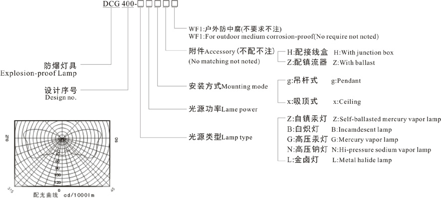 3、可配裝白熾燈、汞燈、高壓鈉燈、金鹵燈。