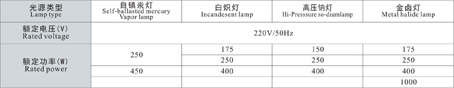 3、可配裝汞燈、高壓鈉燈、金鹵燈。